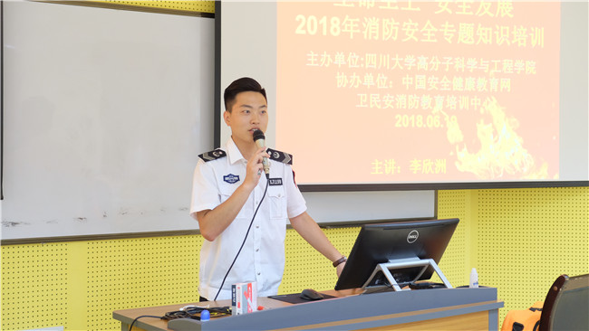 为增强学院师生的消防安全意识,普及消防知识,提高消除安全隐患、应对火灾等突发事件的整体能力,2018年6月19日,我院邀请卫民安消防服务中心李仙洲教官为全体教职工和2017级研究生分别举办了两场消防安全讲座。学院党委书记牟德富、分管安保工作的副院长李艳梅、实验室安保工作领导小组成员及300余名师生参加了此次讲座。