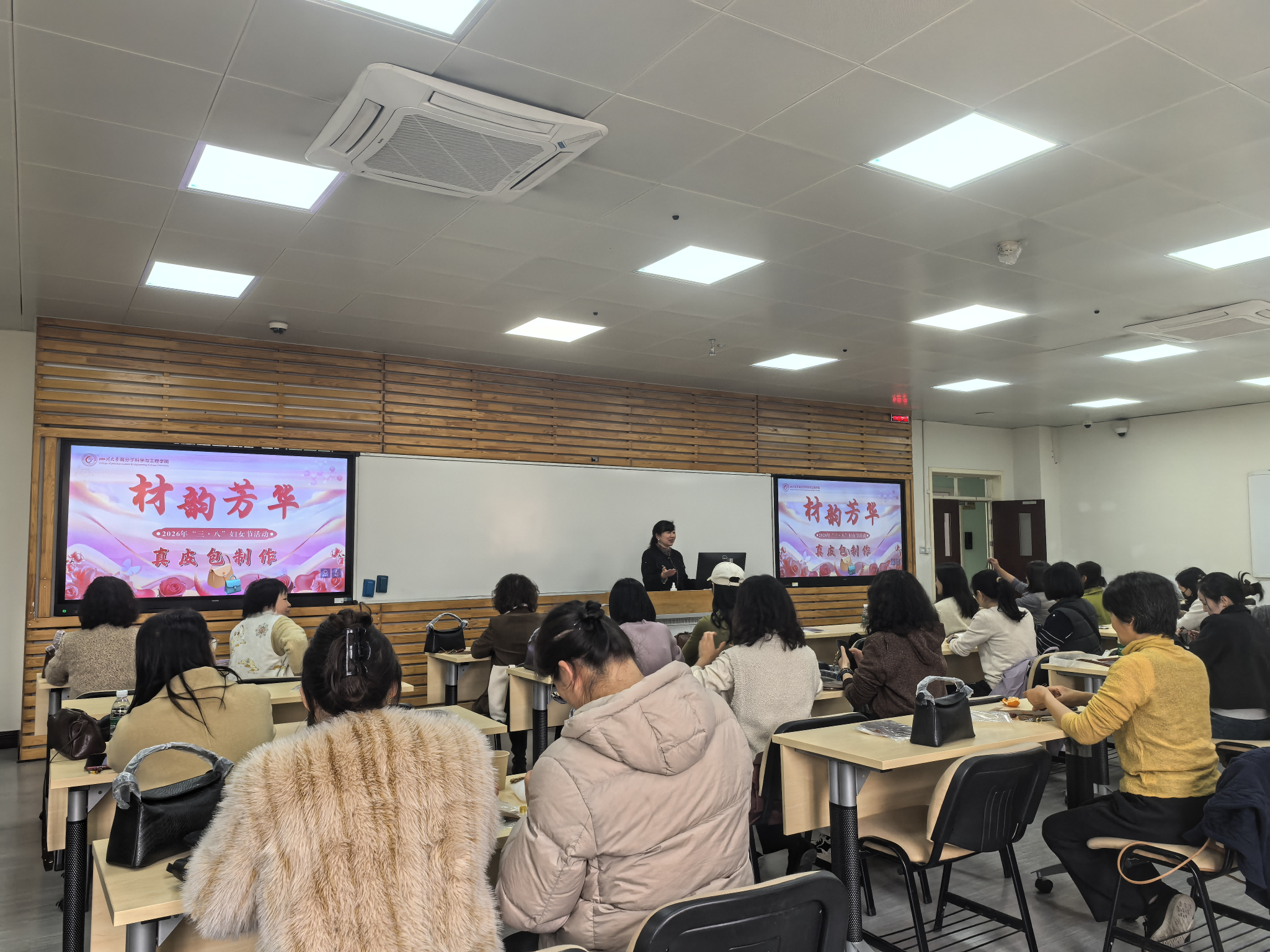 2026年3月6日下午,学院以“材韵芳华”为主题,组织女教职工开展真皮包制作活动,通过材料科学与手工艺术的融合,庆祝第116个“三八”国际劳动妇女节。校工会副主席冷泠、机关工会主席岳华、学院工会主席李艳梅及教师代表共百余人参与活动。
