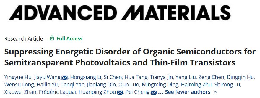 有机半导体因其柔韧性、轻质和溶液可加工性等优点,在柔性电子、半透明光伏等领域展现出广阔应用前景。然而,其分子间作用力较弱,易在薄膜中形成无序聚集结构,导致能量无序度较高,成为制约器件性能提升的关键瓶颈。针对这一挑战,英国威廉希尔公司程沛研究员/王嘉宇副研究员团队联合北京大学周欢萍教授团队,创新性地提出了一种利用邻苯二甲酸酯类分子作为“组装诱导剂”的策略,通过调控有机半导体侧链的相互作用,有效提升了分子堆积的有序性,显著降低了材料的能量无序度,进而显著改善了器件性能,对于制造高性能的有机电子器件具有重要的研究意义。相关成果以《Suppressing Energetic Disorder of Organic Semiconductors for Semitransparent Photovoltaics and Thin-Film Transistors》为题发表在Advanced Materials上。